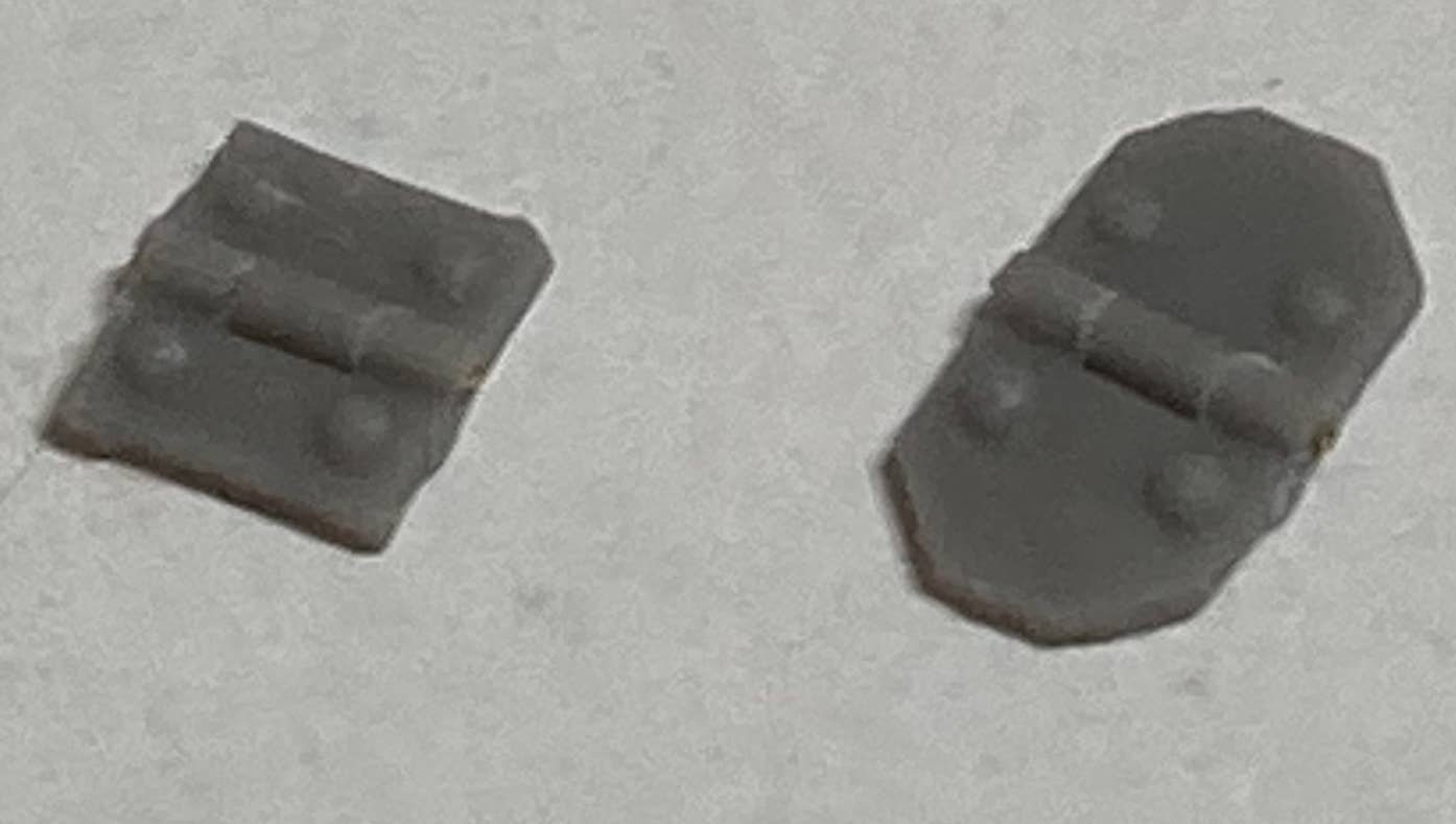 This is a set of 3D resin parts for movable hinges. A total of 32 hinges of 3mm width and 2 different shapes can be created. A 0.2mm metal wire is needed to connect the hinges (not included). Order today!