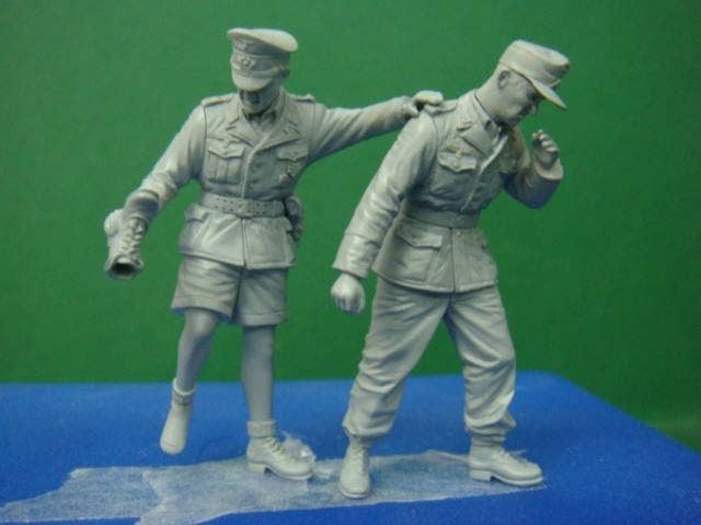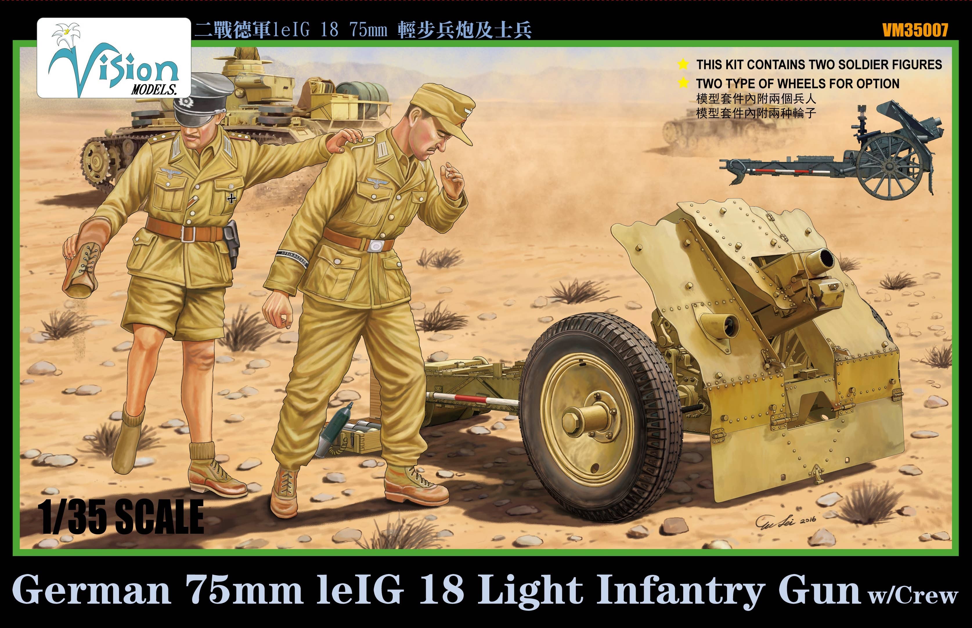 This scale model kit comes molded in grey and brown plastic and builds two soldier figures and one infantry gun. Includes two wheel options.
