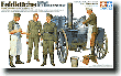 Set of four figures in the poses shown on the box art. Field kitchen with limber and trailer. Numerous accessories such as apples, cheese, bread, potatoes, milk churns, and lamps. Typical high level of quality we have come to expect from Tamiya.
