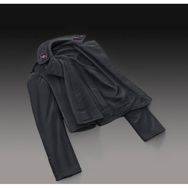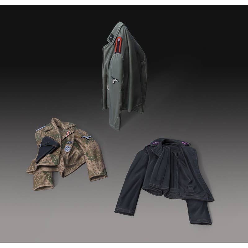 The jacket represents an SS tank crew uniform with a national emblem on the left sleeve, and features detailed insignia such as shoulder ranks and a Tank Assault Badge on the right chest.