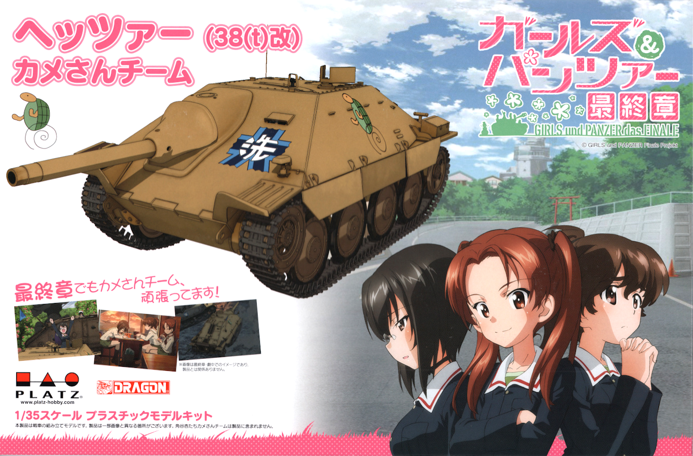 Platz brings us their newest 1/35 kit from "Girls und Panzer das Finale" with the Hetzer (38(t) Kai) from the Turtle Team! Enjoy the original mold from Dragon, with tons of fun decals included! Order today!
