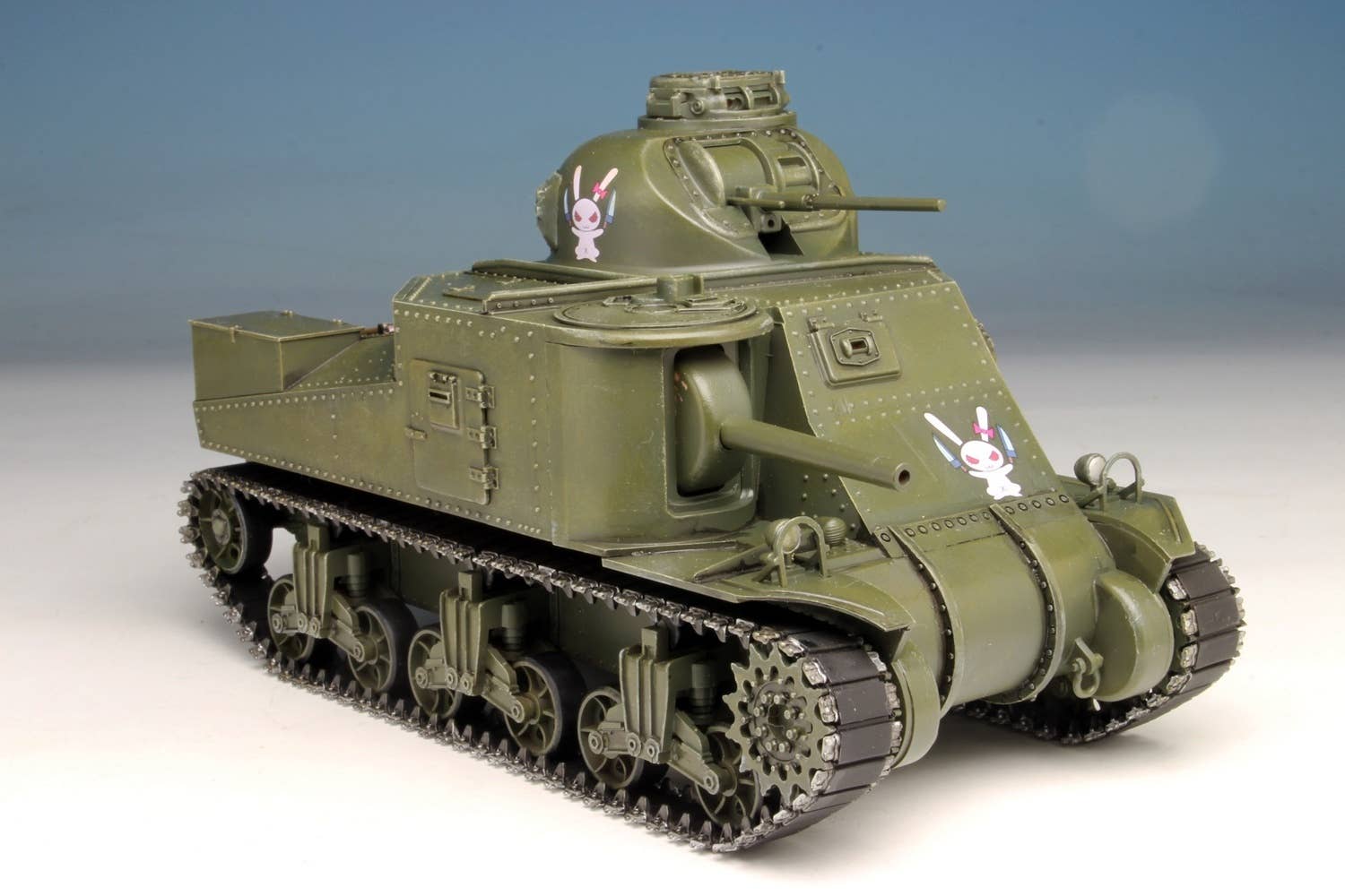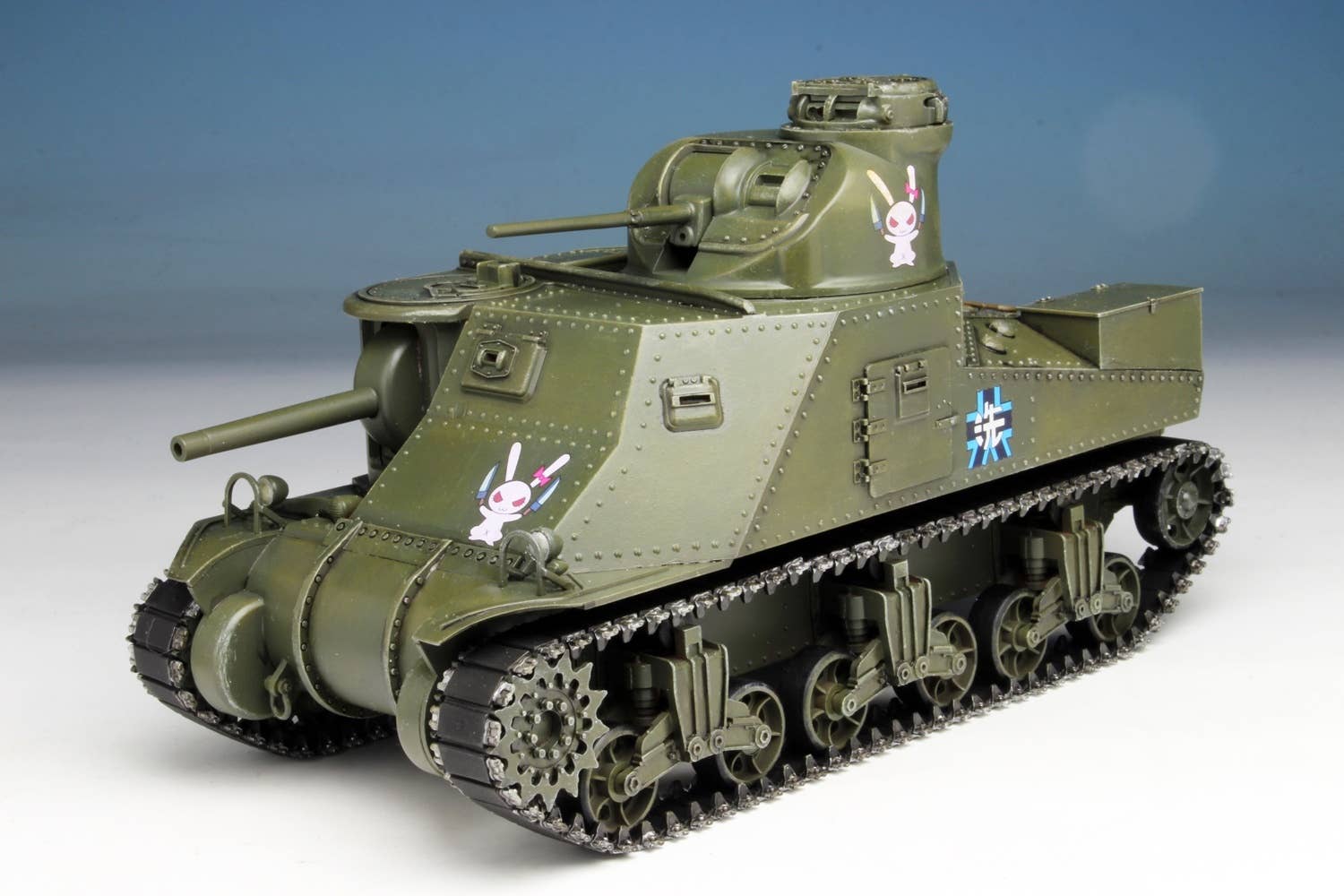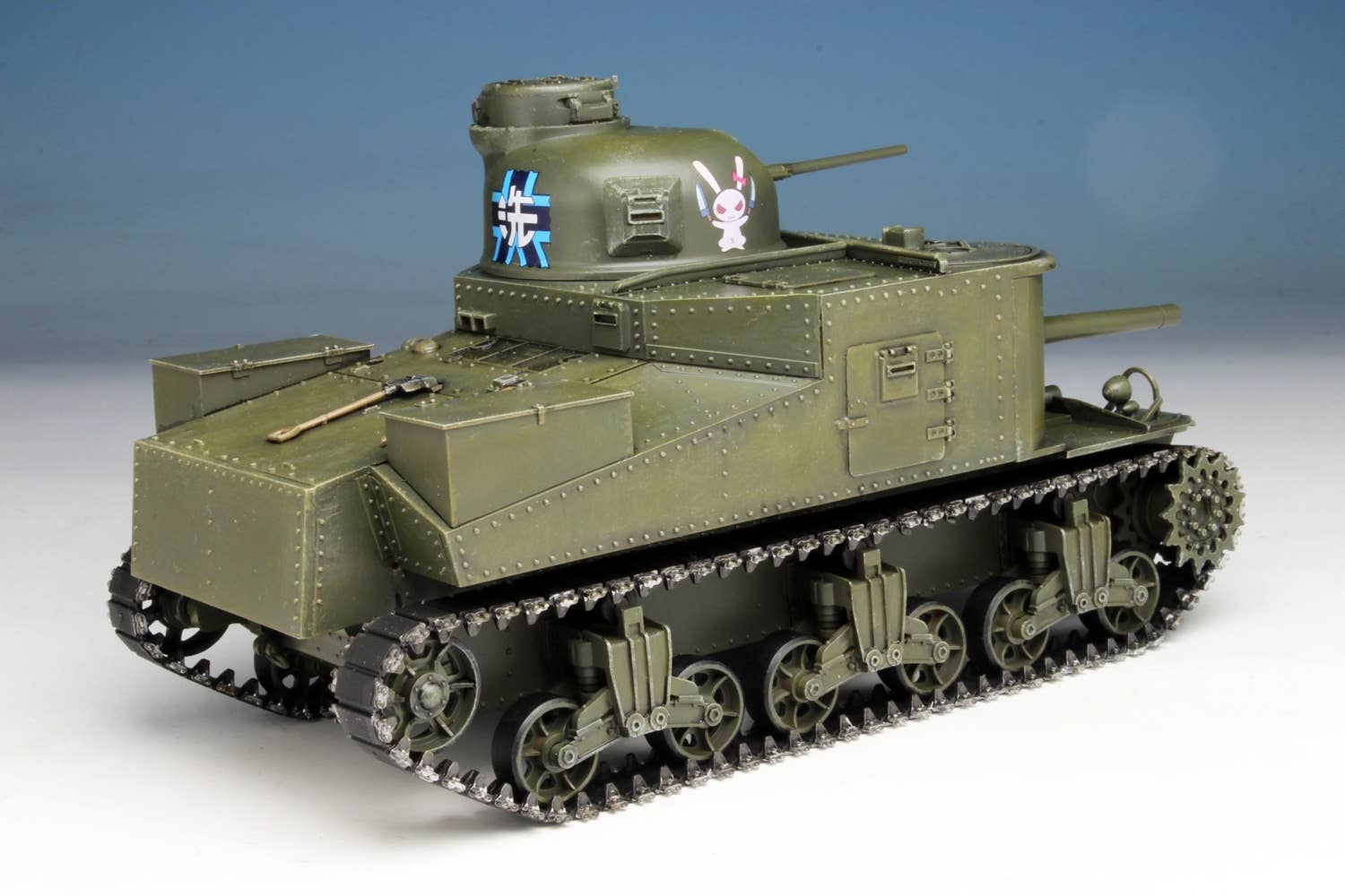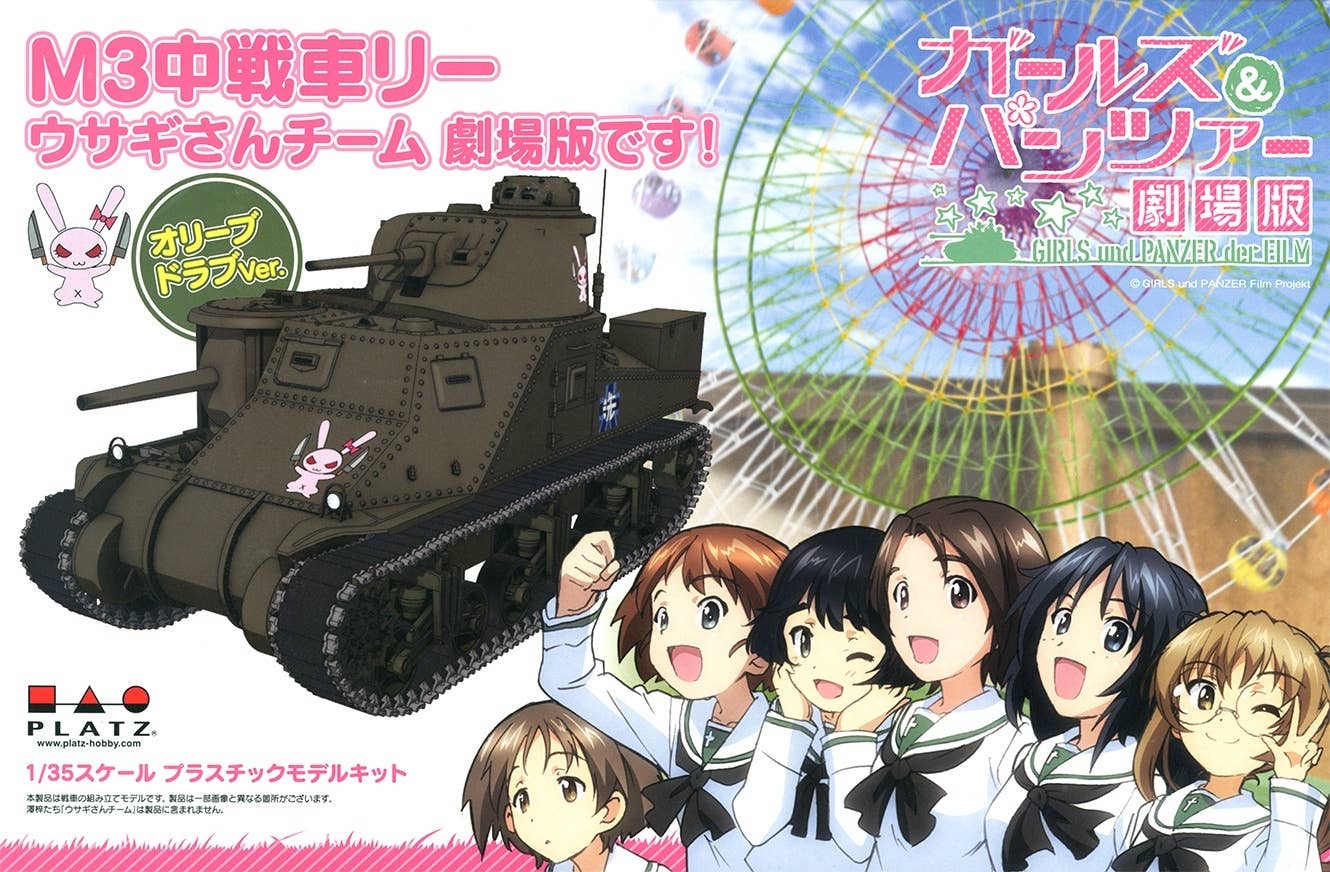This kit of the M3 Lee medium tank features special packaging for the final chapter of "Girls und Panzer"! The kit has been molded in dark gray, and features hatches that can be built open or closed, and movable 75mm gun, 37mm gun, and turret. The kit also includes one character mini magnet, randomly packaged from 66 possible types. Order today!