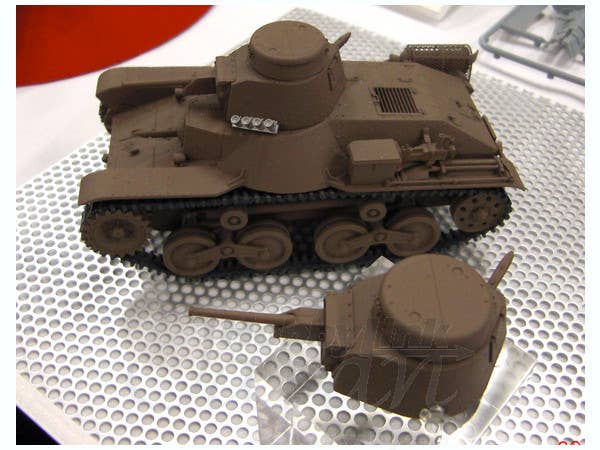 This is Fine Molds' excellent IJA Type 95 Ha-Go light tank kit, with the addition of parts to make a "warning flare equipped" version. Includes detailed flexible belt-style tracks.