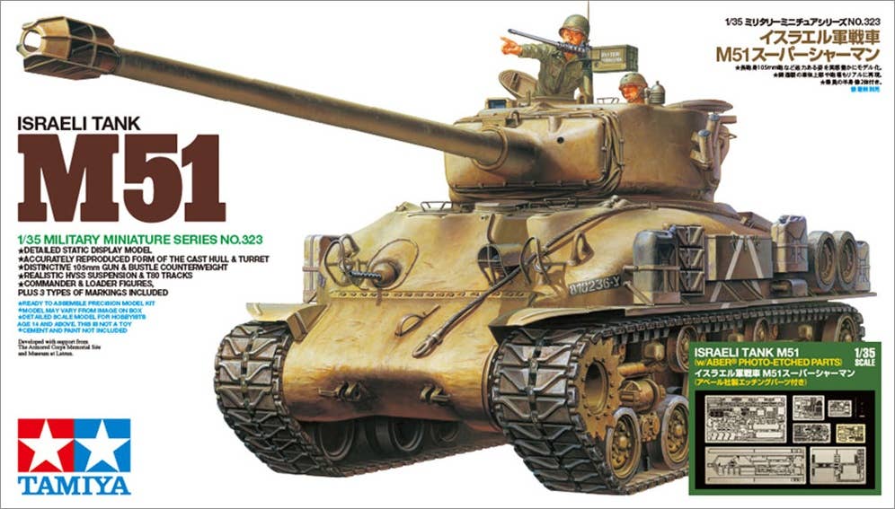 This great value product pairs the popular Tamiya 1/35 scale Israeli Tank M51 kit with 3 photoetched parts sets from the aftermarket photo etched company Aber, which are included in the box. Use them to make your own highly-detailed model of the tank.