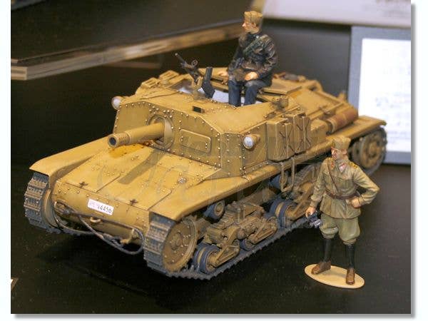 This is Tamiya's veteran kit of the Italian Semovente self-propelled gun, now beefed up with photo-etched metal detail parts, excellent injection-molded link-and-length tracks, and new plastic parts for the drive sprockets, suspension parts, tools, and other details. Also includes two figures and markings for three vehicles. Nice to see this old-but-great kit freshened up with some new goodies! The new tracks and suspension parts in particular really bring this wily veteran up to date.