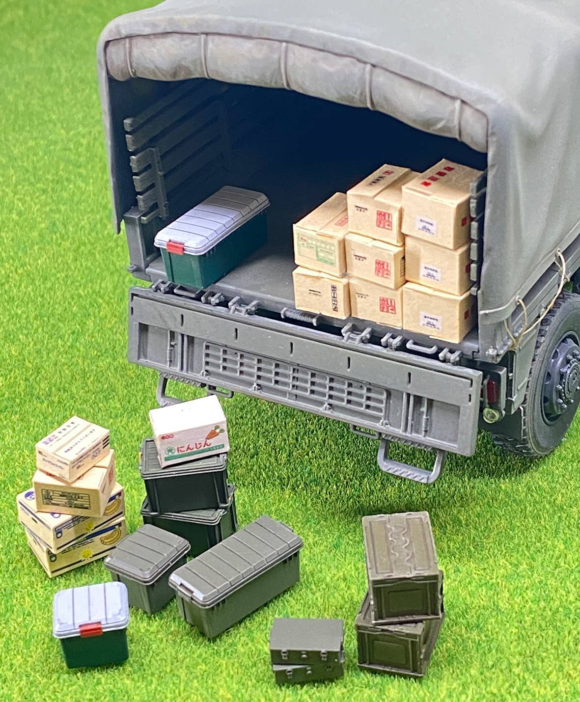 The images above are examples using TM-23: JGSDF "Storage Box Set" and TM-22: JGSDF "Rations Carton Set C" (sold separately).