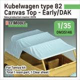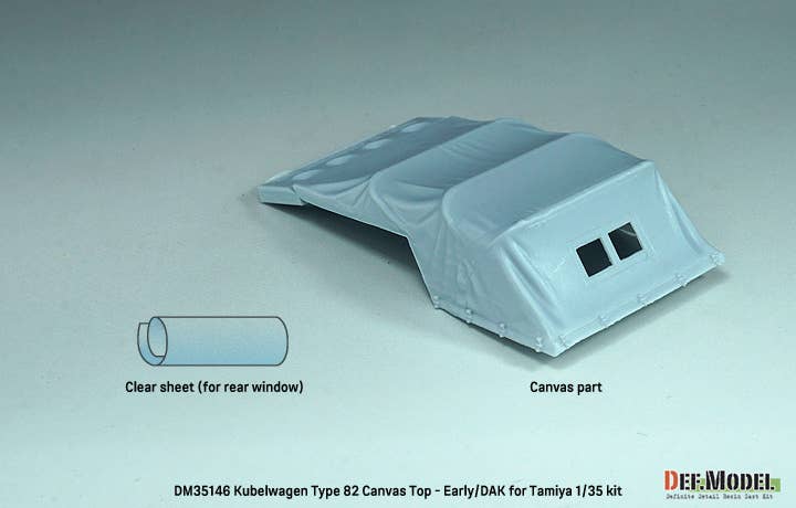 This detail parts set recreates the canvas top (hood) of the German WWII Kubelwagen, a versatile military vehicle. It is designed to be compatible with the Tamiya kit of the German Afrika Korps' Pkw.K1 Kubelwagen Type 82 (Afrika Corps version).