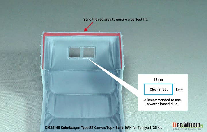 The set precisely replicates the early model canvas top, from the outer shape to the internal frame structure. Additionally, a transparent sheet is included to simulate the rear window.