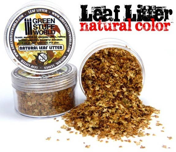 This natural-looking leaf litter is a perfect scenic material for wargame tables, railway layouts, miniature bases or dioramas. It's easy to glue down with PVA glue, too.