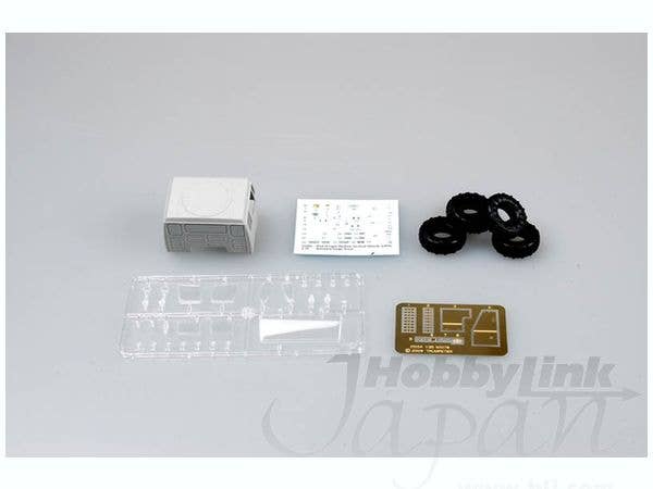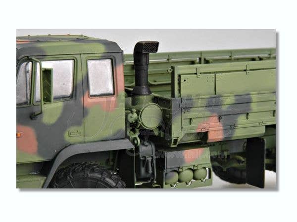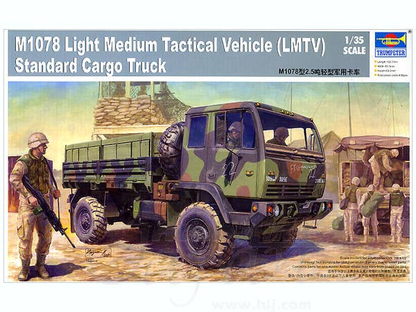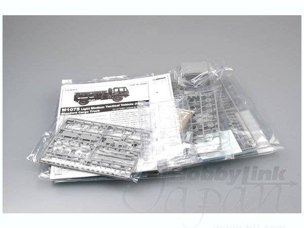 Trumpeter's kit of the M1078 is sharply molded in light gray styrene and features a detailed cab interior, suspension, and cargo bed, with black vinyl tires, photo-etched metal detail parts, and markings for two versions.