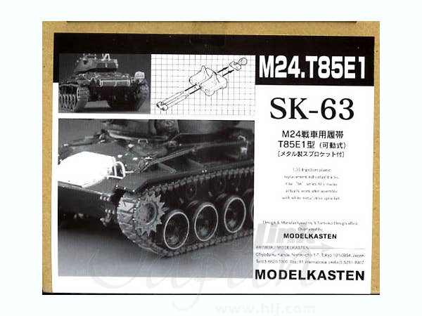 Workable injection-plastic track link set for the US M24 Chaffe light tank (intended for use with Italeri's kit). Set includes die cast sprocket wheels and arms for the idler wheels.