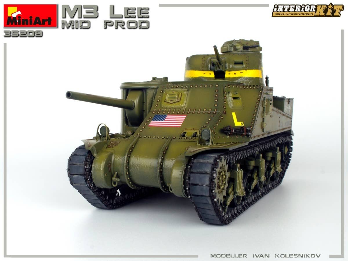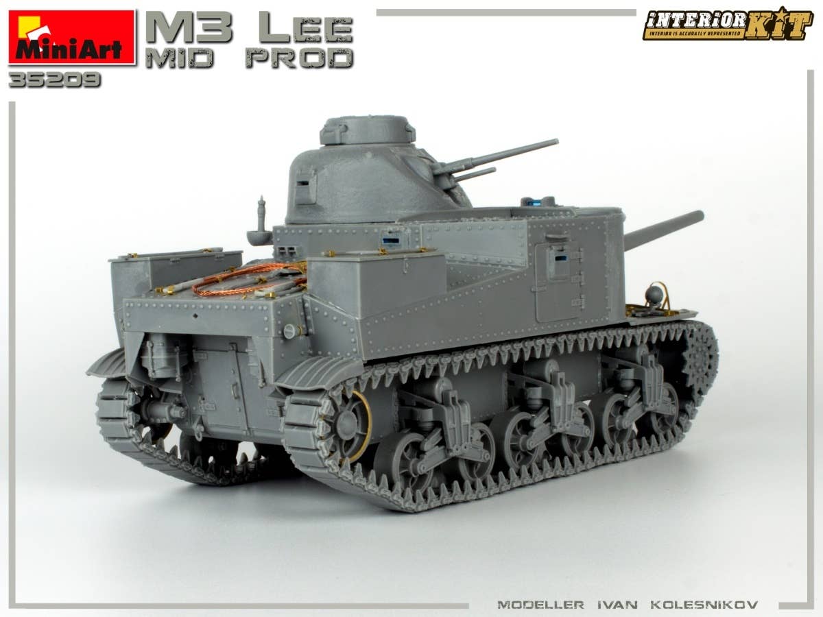 This highly detailed model kit of the M3 Lee tank features accurately represented metal surfaces and weld lines, workable T41 tracks and a Continental R975 engine. The engine compartment is fully detailed, and the turret interior is accurately represented, as are the interiors of the fighting compartment and driver compartment. All hatches can be opened and closed after assembly; the kit comes with clear parts, photo-etched parts and decals for five versions. Place your order today!