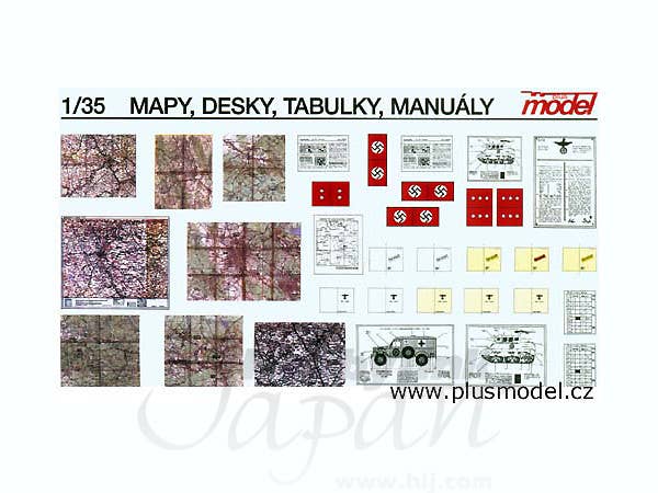 This is a sheet of realistic maps, boards, and manuals you cut out and use in dioramas.