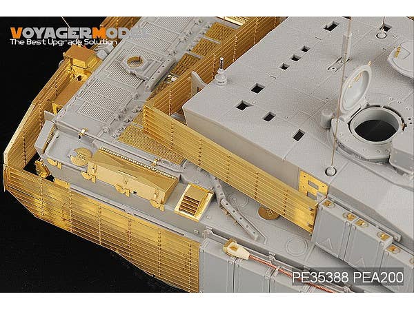 This is a set of photo-etched metal detail parts as shown here for the application described in the title. Slat armor only.