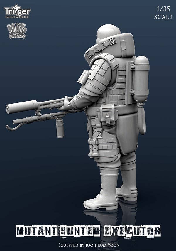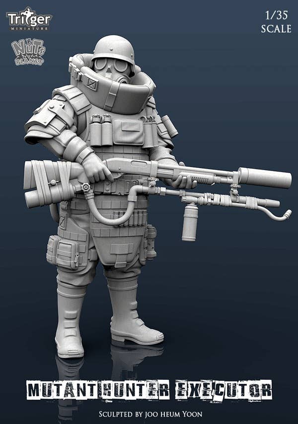 The Mutant Hunter Executor comes to us from a far future. He's modified a shotgun with a gas burner, to summarily execute any mutation he happens to come across. A spare gas tank is attached to his back, and his heavy armor shows he's ready for just about anything. This 1/35-scale unpainted resin figure from Nuts Planet is ready for you to assemble and paint any way you like, then add him to your favorite post-apocalyptic diorama -- order him today!