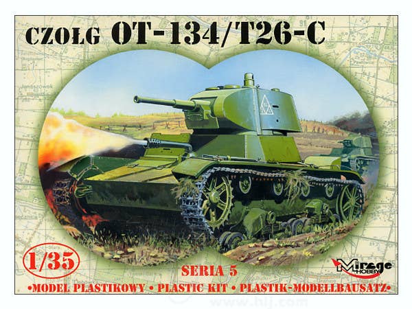 This detailed kit of a OT-134/T-26C flame tank features flexible belt-style tracks, detailed suspension, and markings for multiple versions. Instructions are in Polish and English. Figures are NOT included.