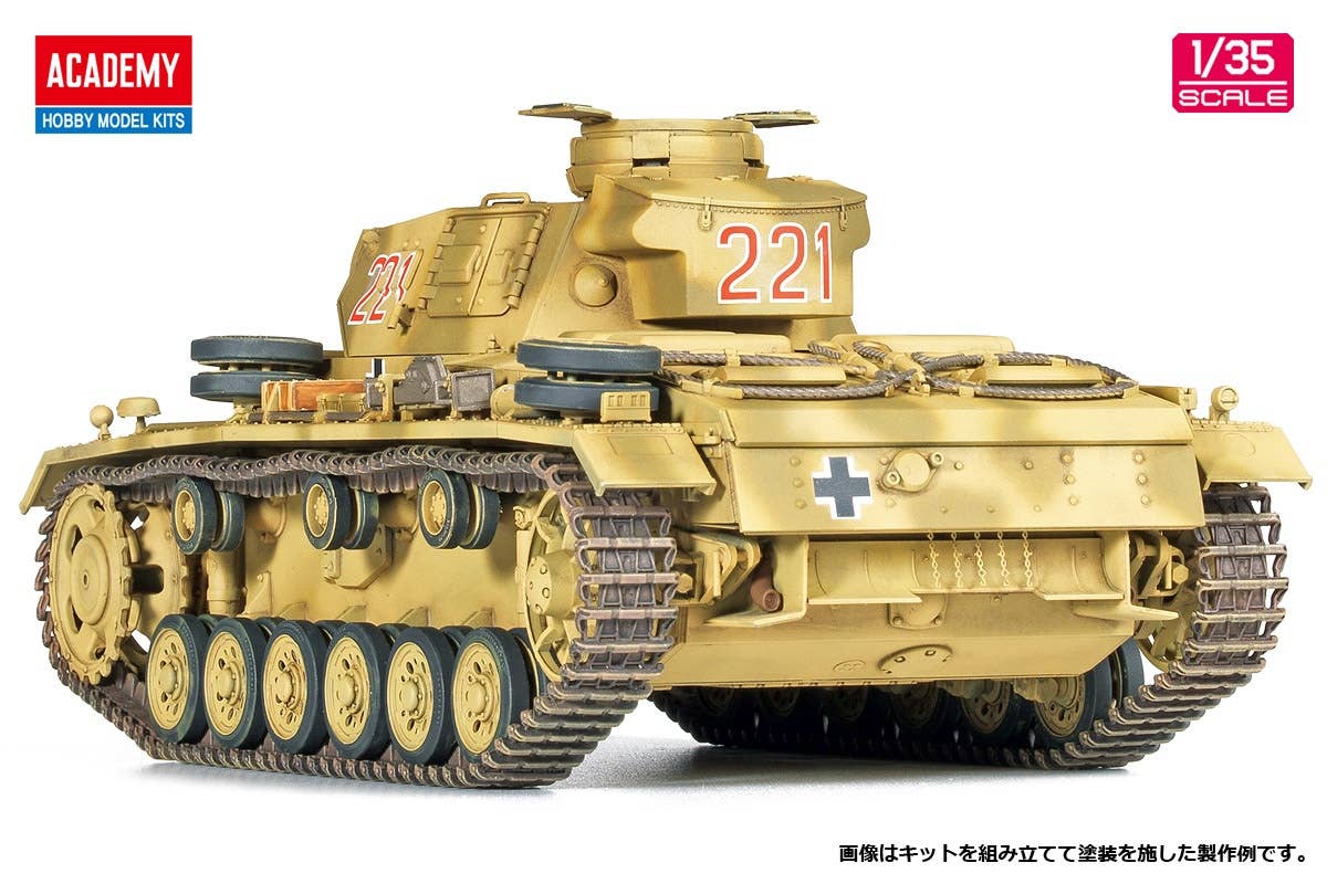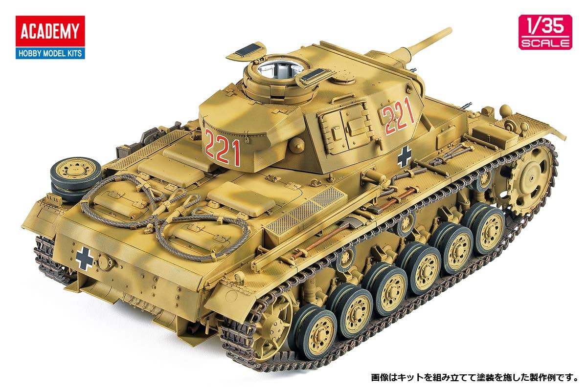 The J-Type III tank, developed by the German Wehrmacht to become their main tank, gets a new-mold kit from Academy! The armor on the front of the hull has been made thicker and stronger, and this version features your choice of a 42-caliber 50mm tank gun, or a 60-caliber 50mm tank gun. A moderate number of parts means assembly is easier than before; photo-etched parts and decals for five versions are included. Order yours today!