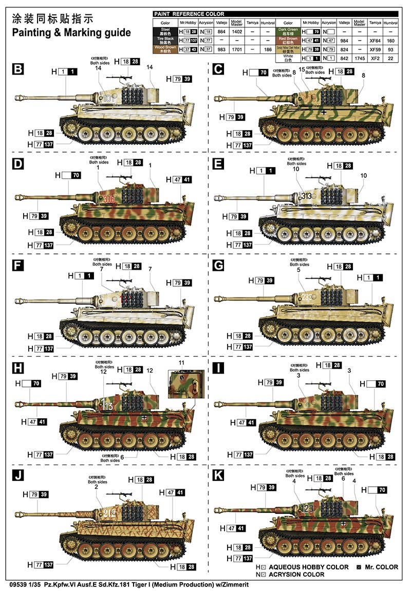 Features of Mid Production Tiger I were new turret with smaller commander's cupola and rubber-rimmed road wheels. Late Production Tiger I had steel road wheels. The Tiger 131 at the Tank Museum in UK is the only surviving Tiger I in running order.