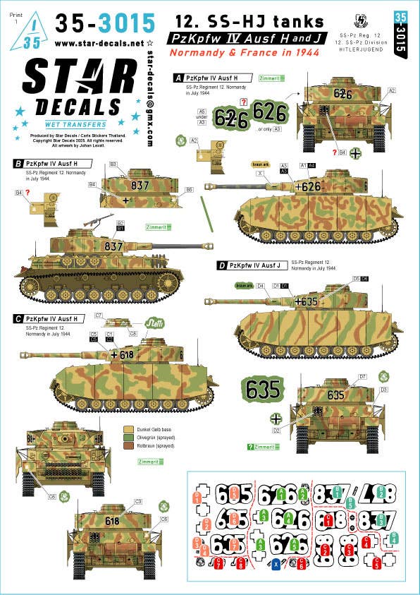 1/35 PzKpfw IV Ausf H and J. 12-SS Hitlerjugend tanks. Normandy and France in 1944.