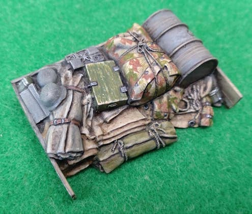 Using local materials, a wooden frame has been attached to the rear of the vehicle to depict a state where more cargo can be loaded. This can be observed in assault guns and tank destroyers of the Type 4 tank series. It is suitable for dioramas and vignettes. Additionally, this product is made of one-piece resin and comes unpainted.