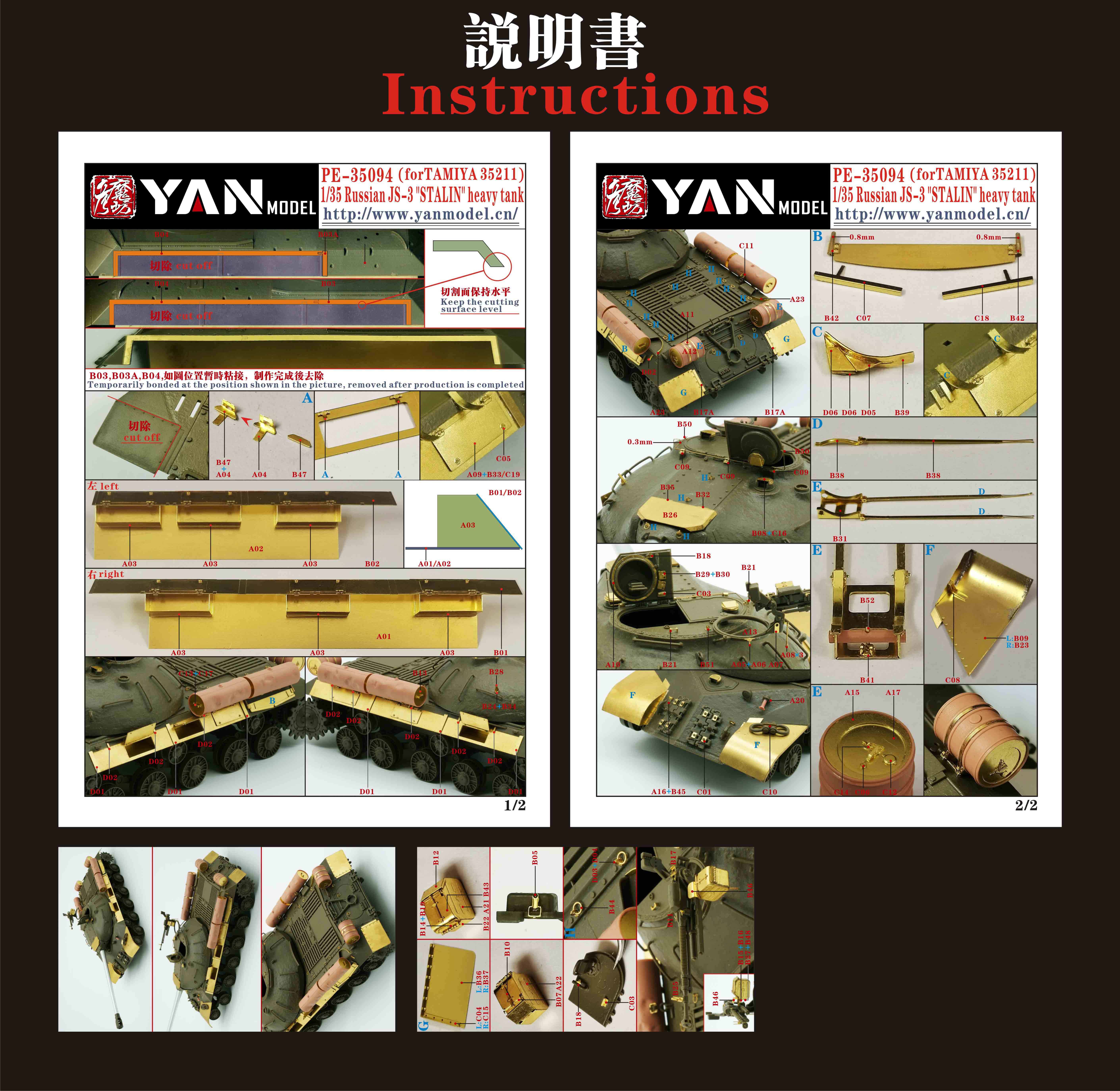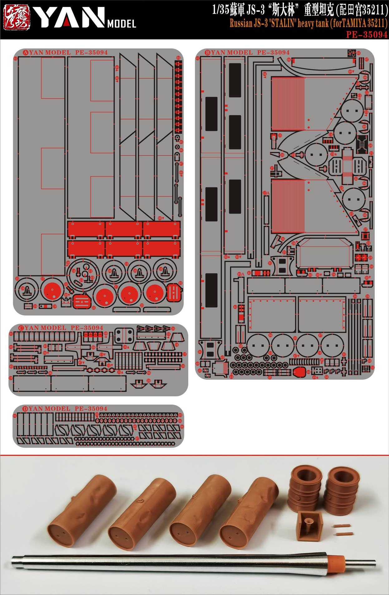 Metal photo etched sheet and 3D printed parts for the Russian JS-3 STALIN Heavy Tank Super PE from YANMODEL.