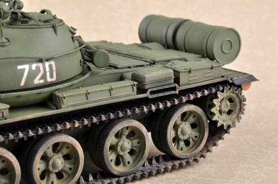 The T-62 originally was conceived as a companion weapon to the T-55, being essentially a T-55 up-gunned with the 2A20 115mm cannon. Both the T-55 and the T-62 used the same wheels, track, engine, transmission, hatchesand other fittings. The primary differences between the two vehicles were the T-62's lengthened hull and new turret design. The new UT-5 cannon could fire its BR-5 APFSDS steel round through approximately 300mm of armor at a range of 1,000 meters. This was adequate to deal with the then-perceived threat of such NATO tanks as the American M48 and later models of the British Centurion. The T-62 was meant to add long-range firing capability to Soviet tank regiments being placed alongside T-55s, but in the later years of its deployment it fulfilled much the same role as the T-55.