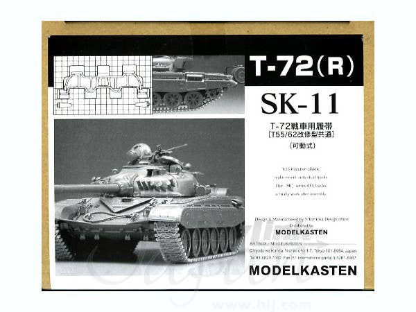 Workable track set for Russian T-72 MBT as well as modernized T-55 and T-62 tanks. Includes assembly tool.