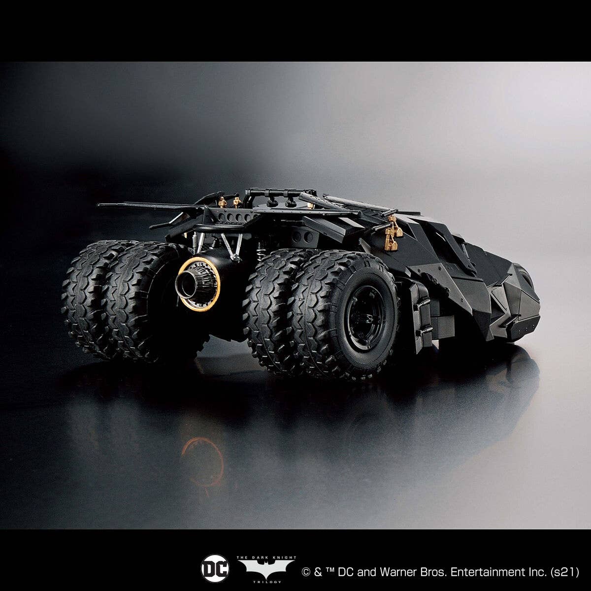 The Batmobile as seen in 2005's "Batman Begins" is now available in model-kit form from Bandai in special specifications! This 1/35-scale kit offers precise and high-quality reproduction; the exterior is now made of a matte material to express the profound texture of the vehicle, and the cockpit shield is now smoke gray. Soft resin is used for the tires to realistically reproduce the grid pattern. Admire the precisely reproduced mechanical details of the front and rear wheel suspensions, cylinders, and engine nozzles. You'll love it -- order yours today!