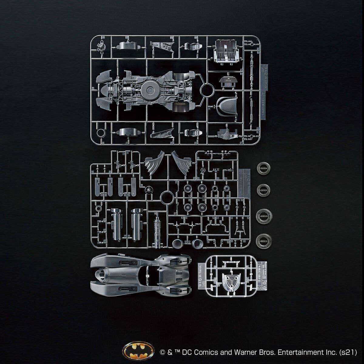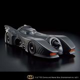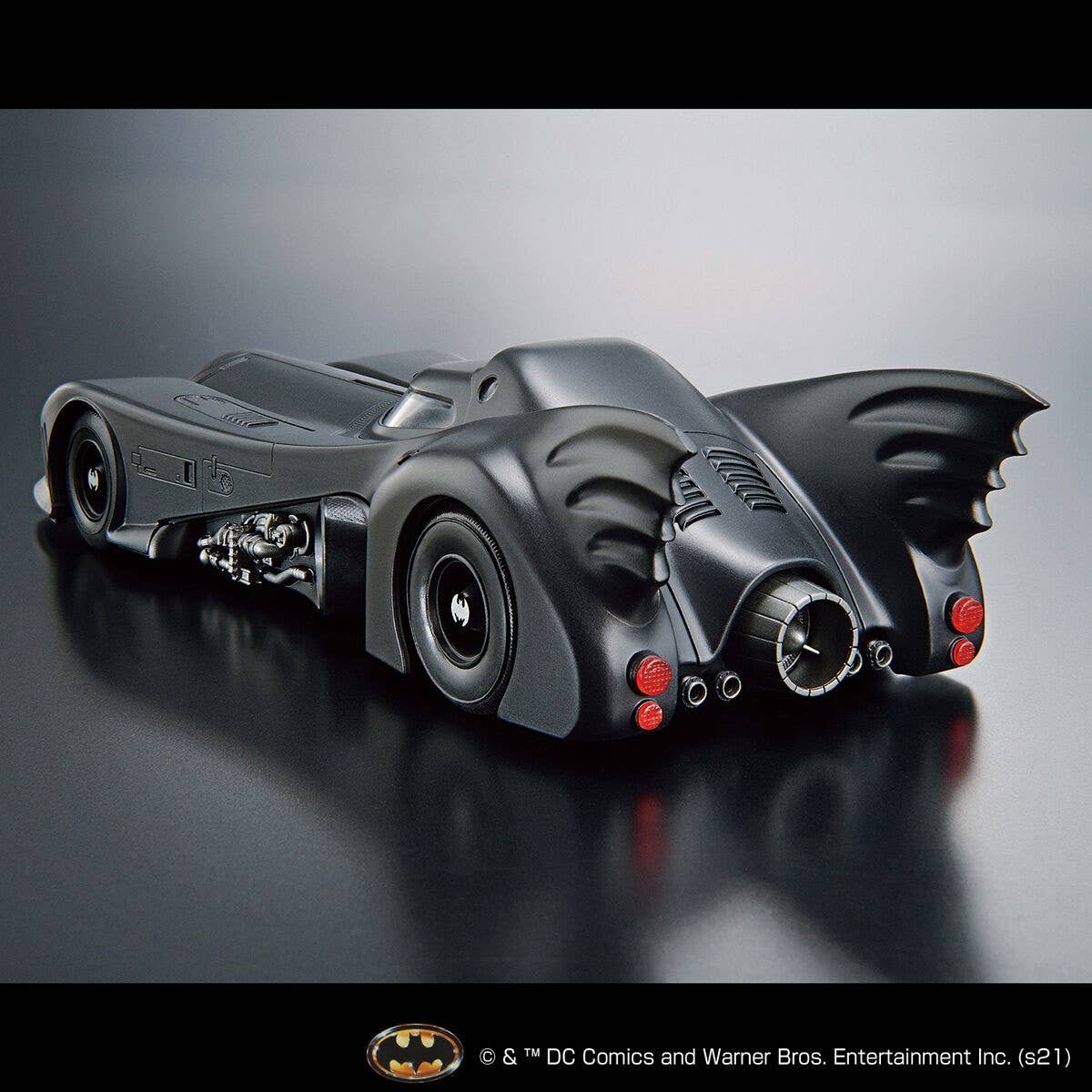 The Batmobile as seen in 1989's "Batman" is now available in model-kit form from Bandai in special specifications! This 1/35-scale kit offers accurate reproduction with precision carved parts; the exterior is now made of a matte material to express the profound texture of the vehicle, and the roof part can slide open and closed. The cockpit interior and mechanical details are precisely reproduced, and the turbine engine is also molded in incredible detail. The machine guns and rocket anchors can be deployed and stored by parts replacement. You'll love it -- order yours today!