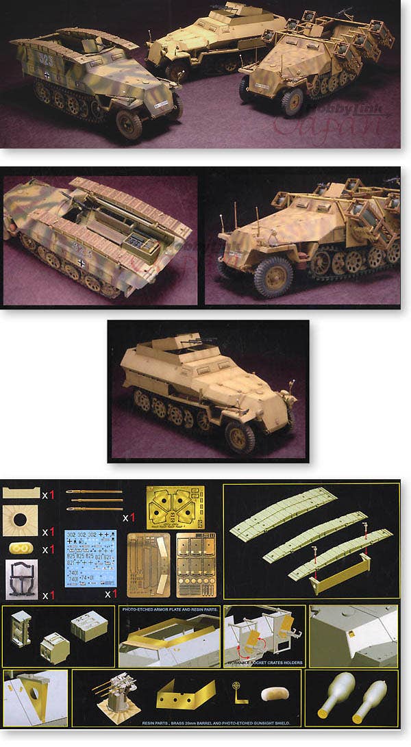 When AFV Club says "3-IN-1," they mean it! Limited to 2000 sets worldwide, this big box of plastic contains 3 full kits, one each of an Sd.Kfz. 251/7 Ausf. D "Sturmbrucke" with assault bridges, a 251/21 Ausf. C "Drilling" with triple 2cm AA gun mount, and a 251/1 Ausf. D. "Stuka zu Fuss" with heavy rocket launchers. Although there are many more variations than represented by these three vehicles, this set gives you a good idea of the incredible versatility of the German 251 halftrack series, the workhorse of the Wehrmacht. AFV Club crams all three of these well-detailed, well-molded kits into one big box, with each sprue being individually bagged (parts hunting should be fun!) and a thick instruction booklet thankfully tackling only one variation at a time. A few resin and photo-etched parts as well as brass gun barrels round out the details of the different variations. Belt-style tracks and a nice sheet of markings are included. Start your 251 collection today with this set, which is, as the packaging proudly states, "the first genuine 3-IN-1 model kit ever existed!"