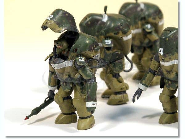 Sweet set of five prepainted Melusine operatives includes extra arms, a hatch for the open cockpit, and some weaponry.