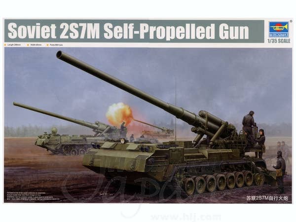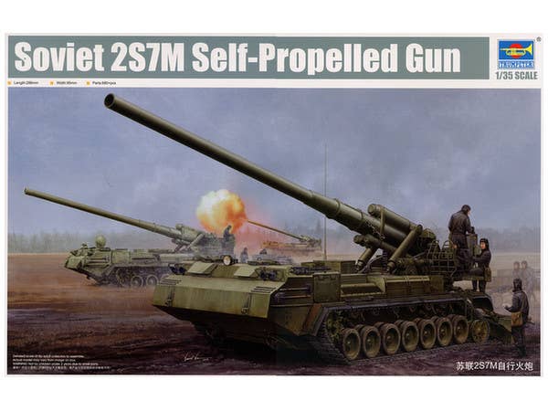 The 2S7 Pion ("peony") or Malka is a Soviet self-propelled gun. "2S7" is its GRAU designation. It was identified for the first time in 1975 in the Soviet army and so was called M-1975 by NATO (the 2S4 Tyulpan also received the M-1975 designation), whereas its official designation is SO-203(2S7). Its design is based on a T-80 chassis carrying an externally mounted 2A44 203 mm gun on the hull rear.
