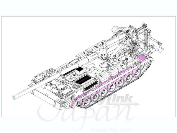 It carries 4 203 mm projectiles for immediate use while the remainder is carried by another vehicle and it is capable of firing nuclear ammunition of the same caliber. The gun has a range of 37,500 m but the range can be extended to 55,500 m by using RAPs (Rocket Assisted Projectiles). The Pion has also been the most powerful conventional artillery piece since entering service in 1983.
