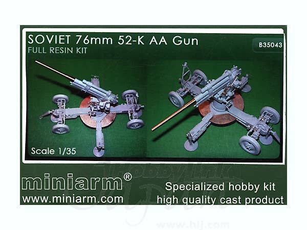 A full resin kit with metal barrel of the Soviet 76mm 52-K AA gun from MiniArm of Russia. Highly detailed!