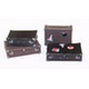 Gray resin makings for four suitcases, along with decals for decoration.