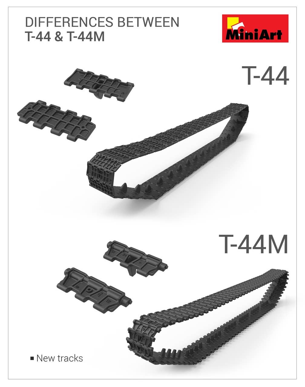 From MiniArt in Ukraine comes this new kit of the Soviet T-44M Medium Tank! According to the manufacturer this highly detailed kit contains workable tracks, workable torsion bars, a fully detailed fighting compartment interior and the V-54 engine included. All parts come molded in grey plastic with some parts molded in clear. Photo-etched metal detail parts and decals are also included