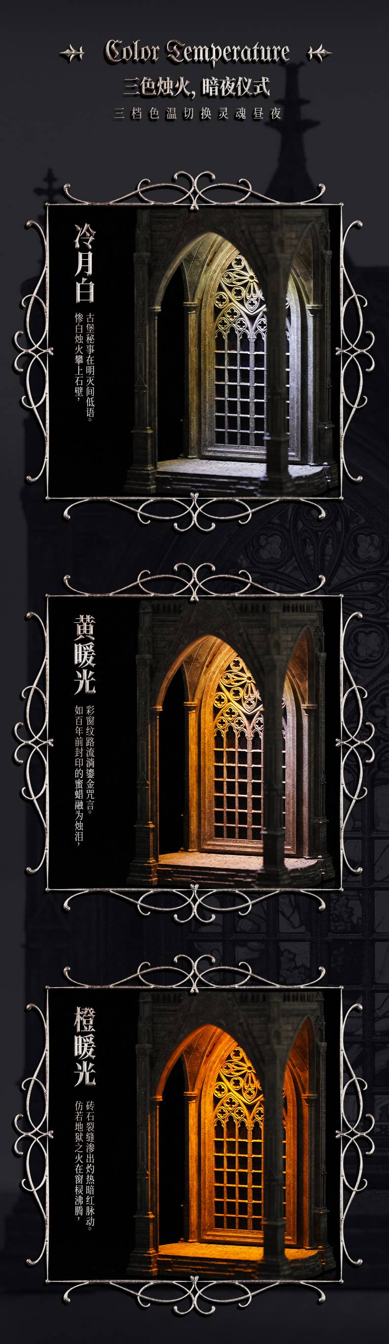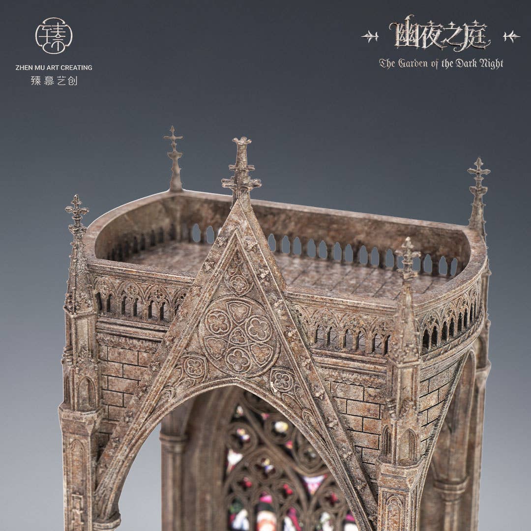The Chinese miniature manufacturer Zhenmu brings us their original 1/35-scale miniature, Garden of the Dark Night! This majestic and mysterious building features striking Gothic archers and beautiful stained-glass windows. The miniature also has a lamp with a three-stage dimming function, making it a unique and versatile lamp that blends seamlessly into any room. This special piece exudes a mystical atmosphere -- order yours today!