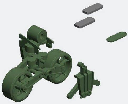 All parts come molded in olive green plastic. Tracks are one piece belt style.