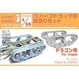 Introducing the 1/35 Undercarriage Parts for the M3 half-track series, meticulously crafted using a 3D printer. This versatile set offers options for customization, allowing you to choose the desired detail-up range. CM-103A features a set of starting wheels and guide wheels, with intricate shapes seamlessly reproduced in one-piece molding. For convenient assembly, CM-103B offers a suspension set with several large pieces molded as a single unit. CM-103C presents a crawler set with comprehensive one-piece molding all around. Please note that there are two types available, suitable for either Tamiya or Dragon kits, due to a slight difference in overall length. Ensure careful selection when making a purchase. (D: for Dragon, T: for Tamiya) For a comprehensive solution, CM-103D includes everything from A to C. Take note that this set includes crawler parts of varying total lengths, specifically designed for either Dragon or Tamiya (this product). Upgrade your kit by utilizing these parts as replacements for the originals, enhancing the overall authenticity and detailing of your M3 half-track model.