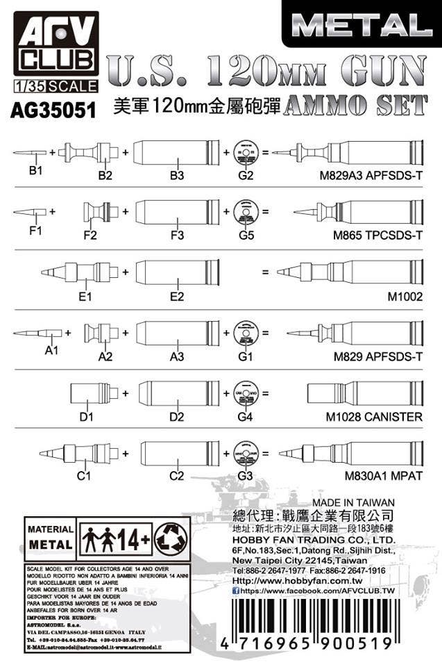 From AFV Club in Taiwan, comes this 1/35 scale model of a US 120mm AMMO SET, which is to be used as shown in the photos.