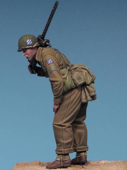 This delicately detailed 1/35-scale resin figure from The Bodi reproduces a WWII-era U.S. Army machine gunner, stooped under his burden. Unpainted and unassembled. Place your order today!