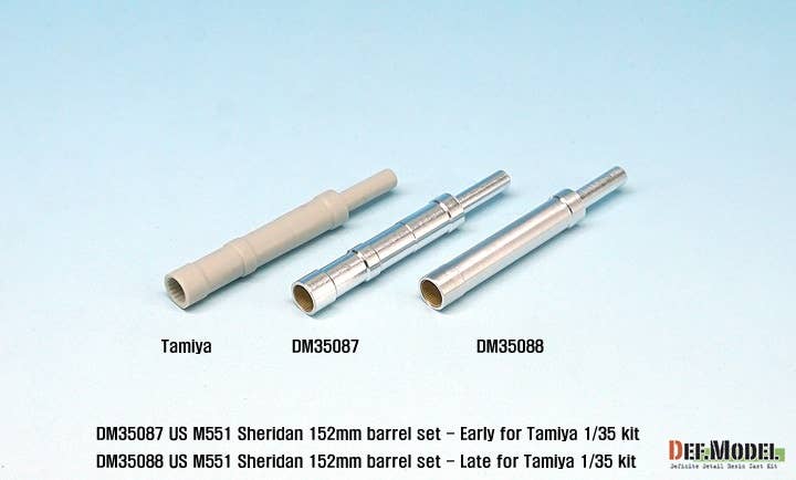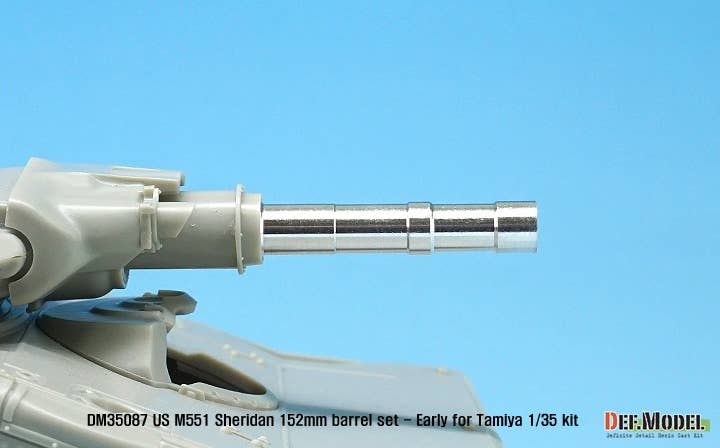 This is a set of photo-etched metal detail parts and barrel as shown here for the 1/35 US M551 Sheridan Tank by Tamiya. Base kit not included.