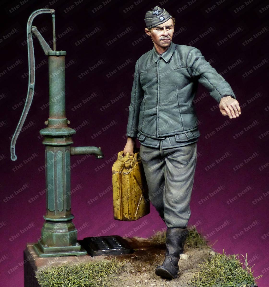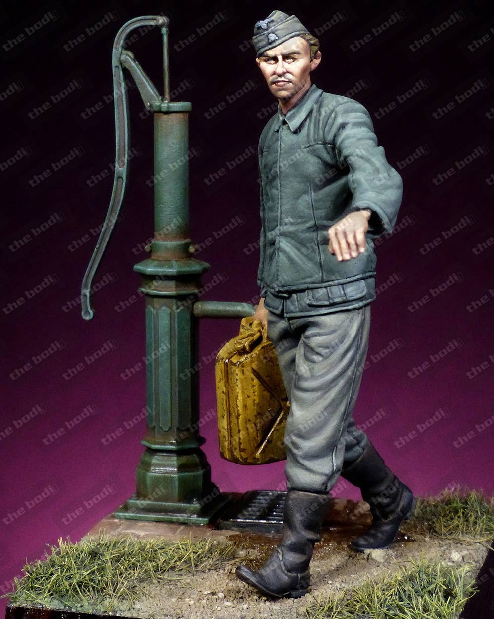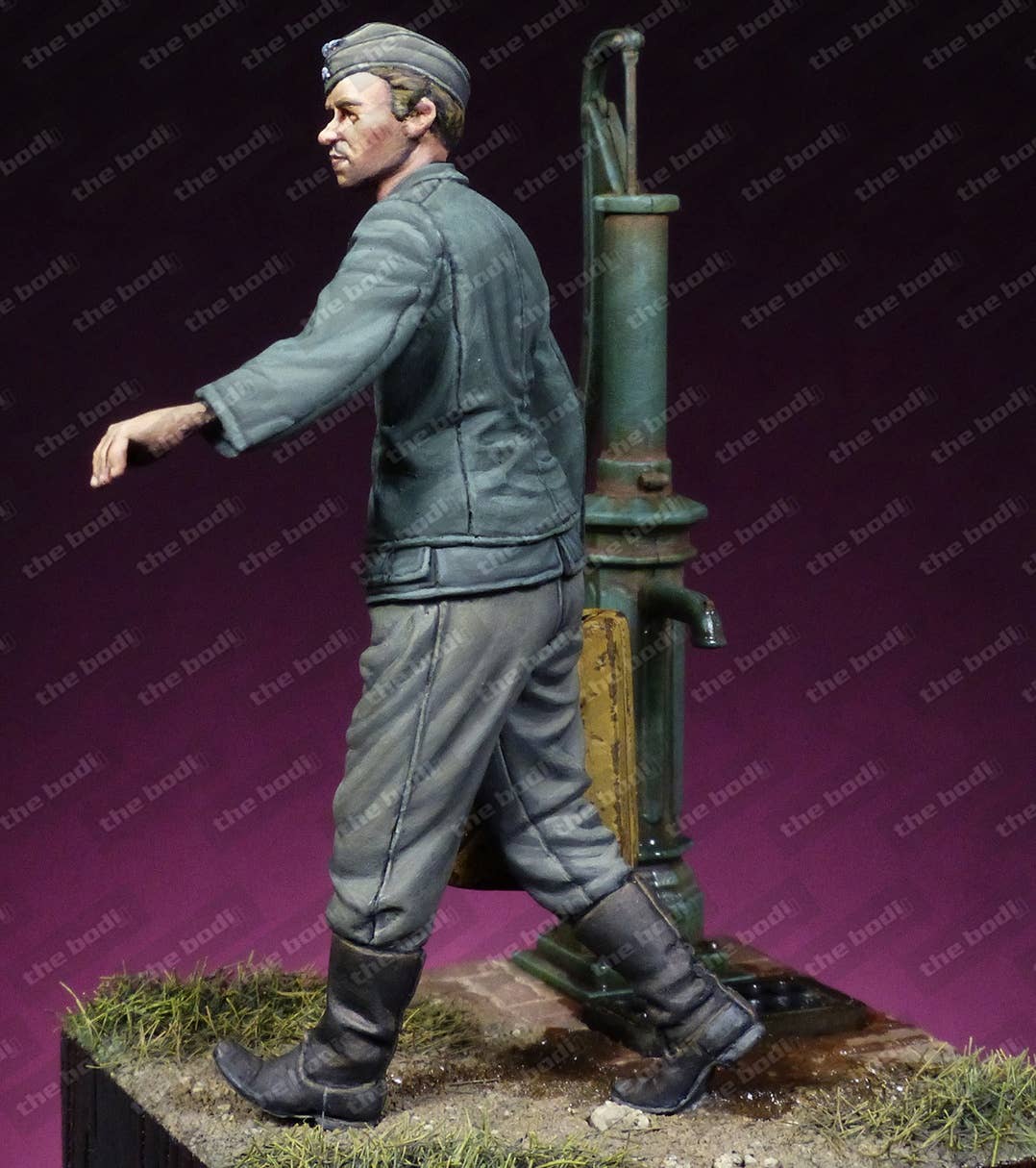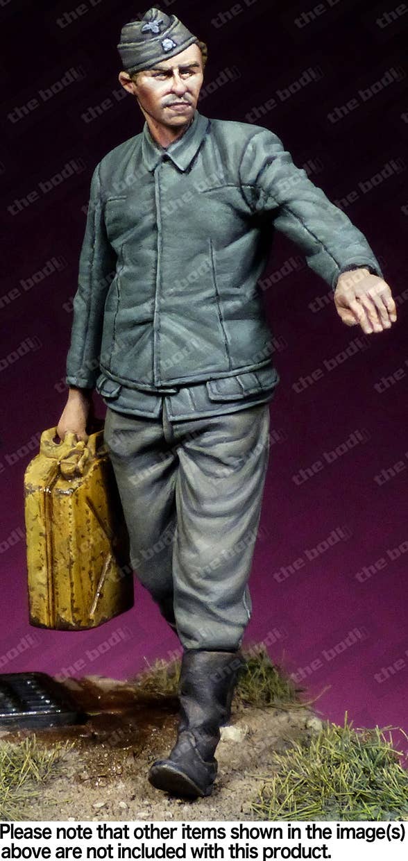 This unpainted resin figure of a Waffen SS mechanic features an amazing level of detail that's difficult to achieve in an injection-molded figure. Please be aware that the pump and base shown are not included; you get the figure and the jerry can he's holding.