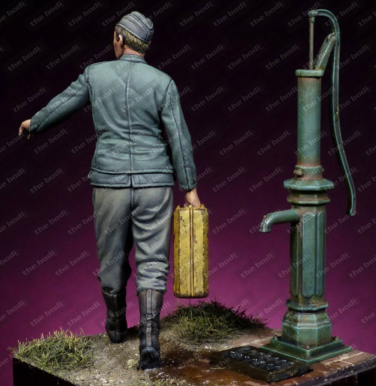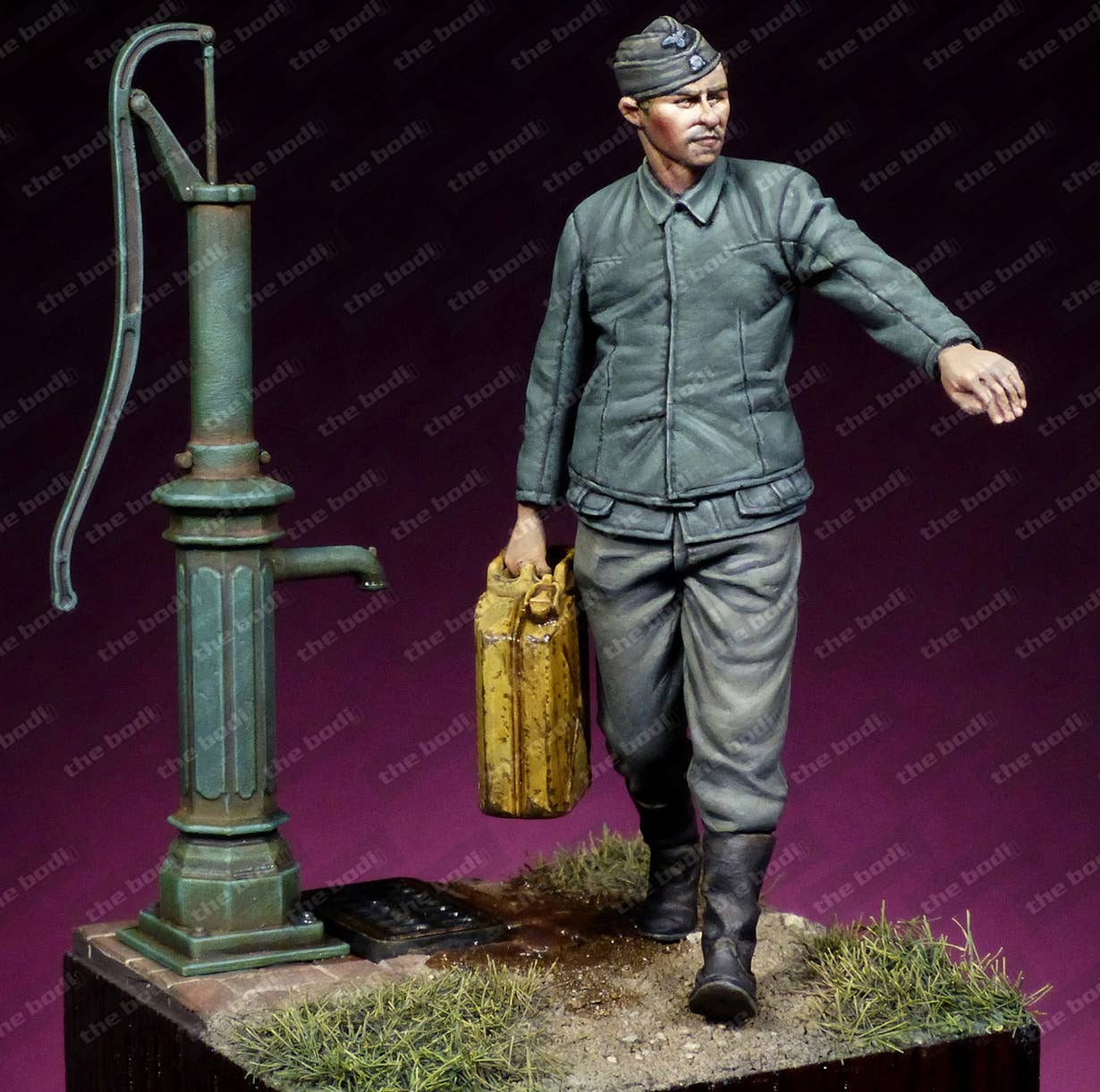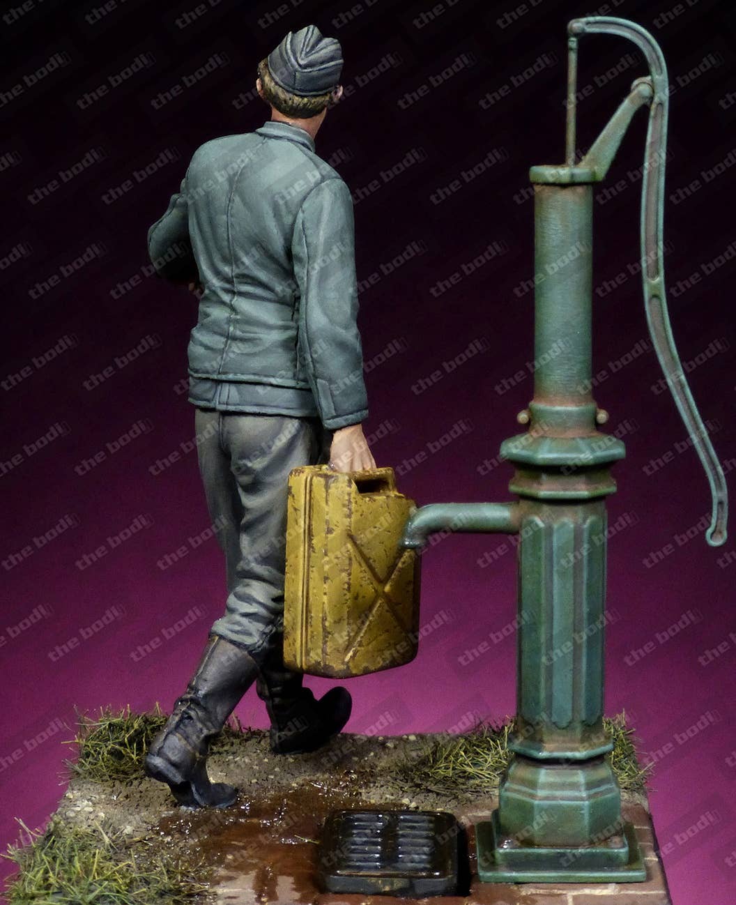 This unpainted resin figure of a Waffen SS mechanic features an amazing level of detail that's difficult to achieve in an injection-molded figure. Please be aware that the pump and base shown are not included; you get the figure and the jerry can he's holding.