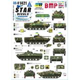The kit includes markings for the BMP-1P and BMP-3 infantry fighting vehicles used by the Ukrainian military during the Russian invasion of Ukraine (2022-2024). It features five selected versions, with some optional markings available.