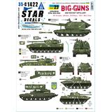 The kit includes markings for the self-propelled howitzers 2S19 Msta-S, 2S1 Gvozdika, 2S9 Nona, the multiple rocket launcher TOS-1A, and the BM-21-1 Grad used by the Ukrainian military during the Russian invasion of Ukraine (2022-2024). It features six selected versions, with some optional markings available.