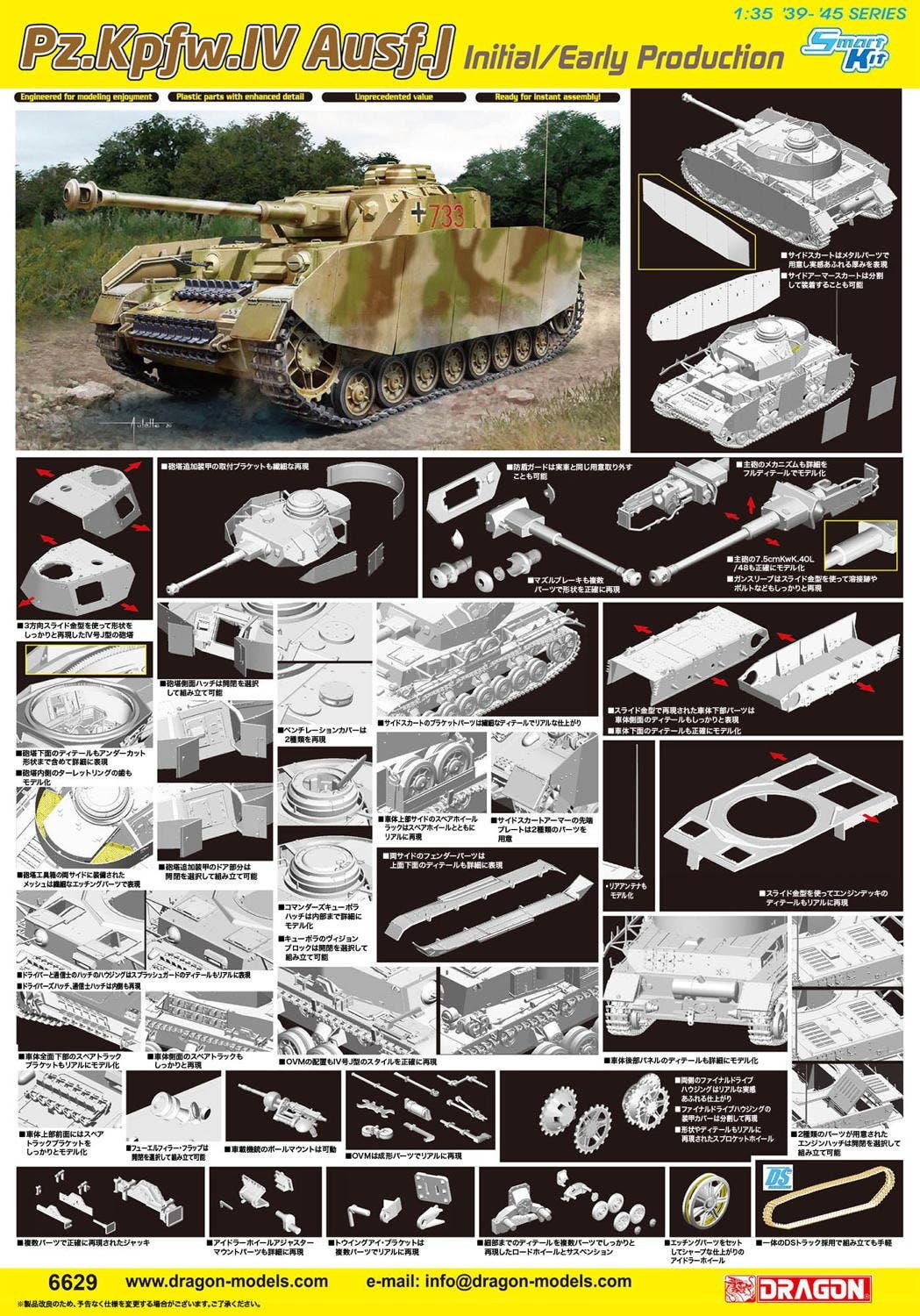 The Pz.Kpfw. 161-IV tank was one of the most trusted tanks of German soldiers during World War II. Production started in 1936, and since the body design remained the same from the start, many improvements and enhancements were made over the course of the war without changing its basic dimensions; a total of about 8,500 of this tank were produced. It was used for the entirety of the war, and the J type was the final production type. It was a successor to the H type, with simplified equipment and reduced fuel consumption. The biggest difference between the H and J types was that the turret rotation motor was removed and replaced by manual operation. The very early/early production type of the J type was manufactured from April to May 1944.