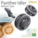 This parts set is a 3D printed reproduction of the 600mm diameter induction wheels, called the normal type, mounted on Panther tanks.