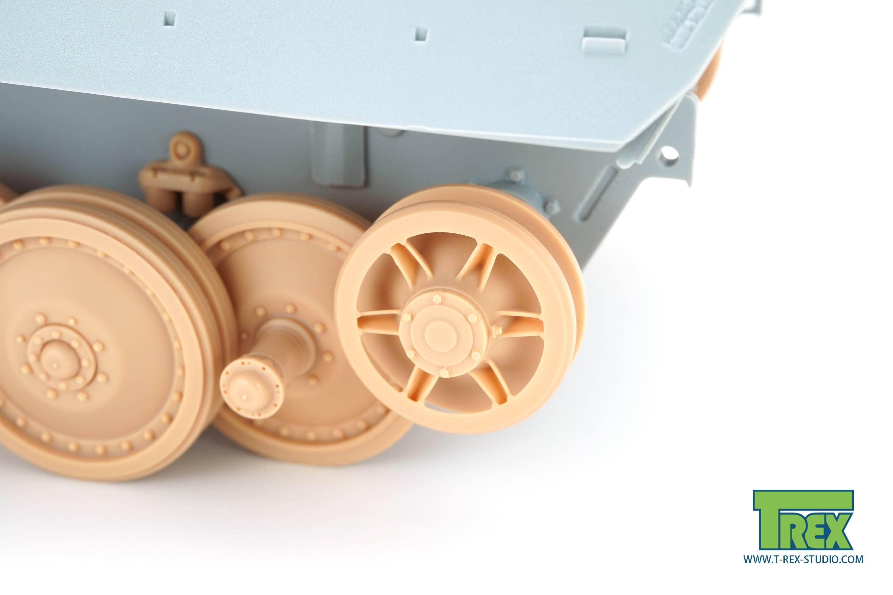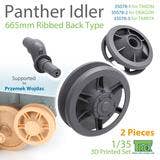 This parts set is a 3D printed kit of a rib-back type induction wheel for Panther tanks with a diameter of 665mm.