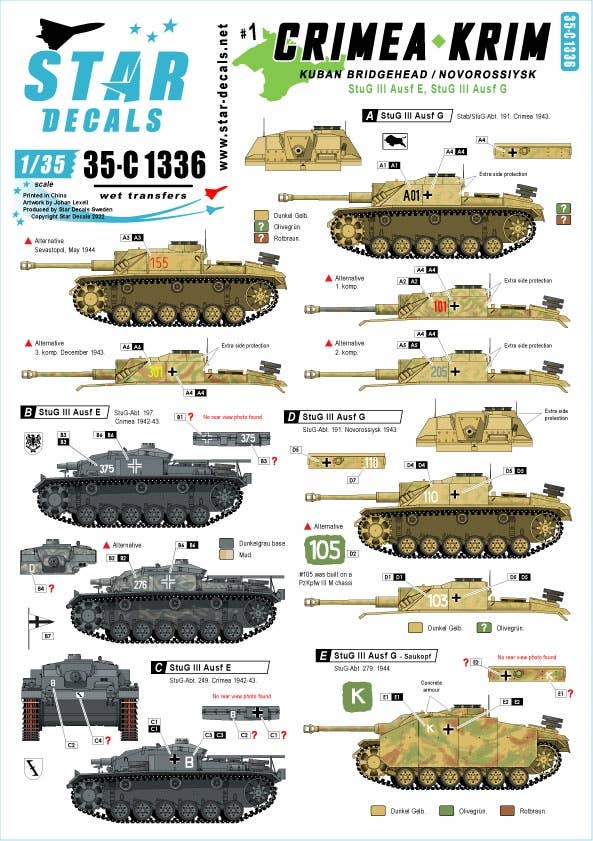 This is a sheet of decals for marking military vehicle models.